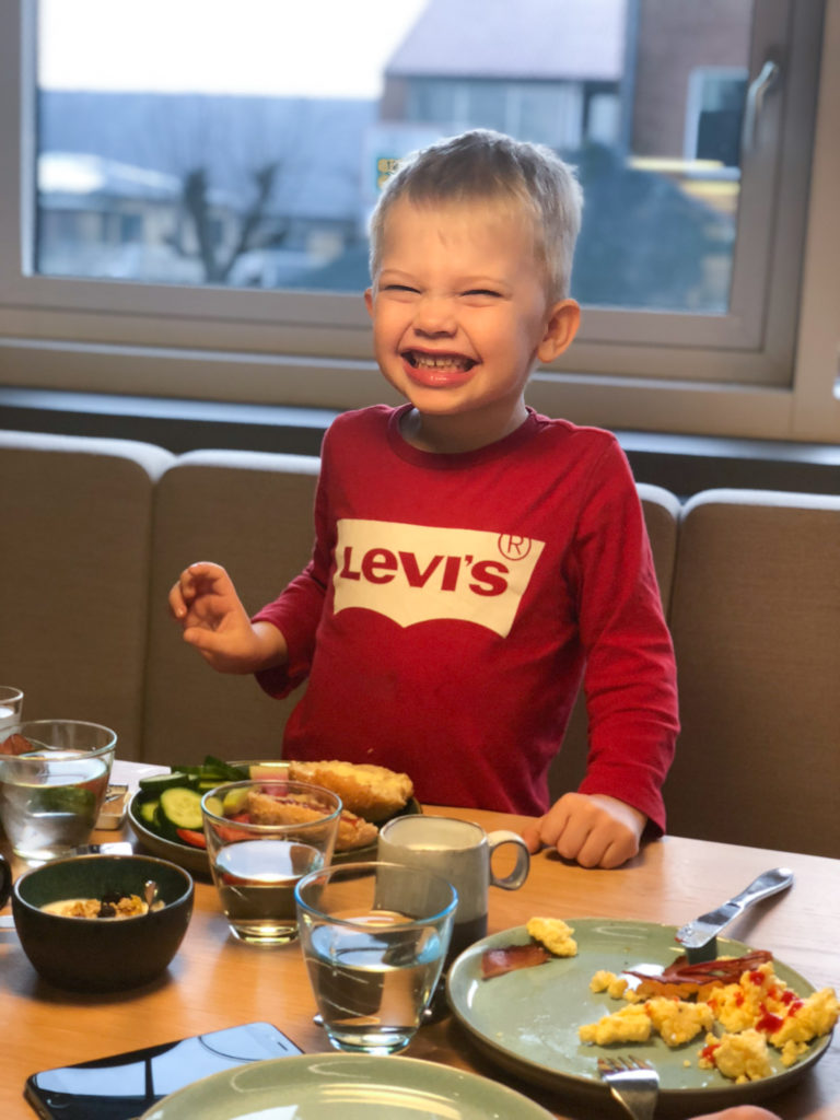 Vi har haft den dejligste familieweekend med masser af tid sammen og aktiviteter i DGI Huset Herning. Hvis man ellers bor i området, vil jeg virkelig anbefale en weekendtur her til, specielt hvis man har børn, eller hvis man elsker at bevæge sig. Der var en meget børnevenlige svømmehal med varmvandsbassin, rutchebane, babybassin, boblebad osv. Der er et taske stort fitnesscenter på hotellet, en masse hold lige fra styrke og zumba til yoga, spinning og aqua-hold. Der er badmintonbaner og bordtennis. Der er fine hotelværelser og vi var så heldige at få et værelse med god udsigt og stort badeværelse. Og så er der en rigtig god morgenmadsbuffet med både almindeligt brød, glutenfrie boller, almindelige morgenmadsprodukter og laktosefrie udgaver, ingefærshots, juice, æg og meget mere.