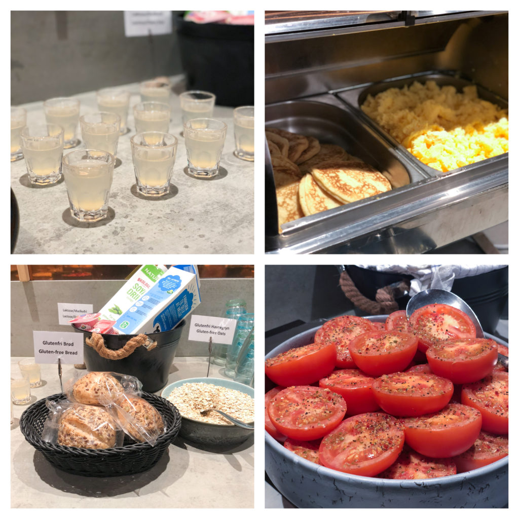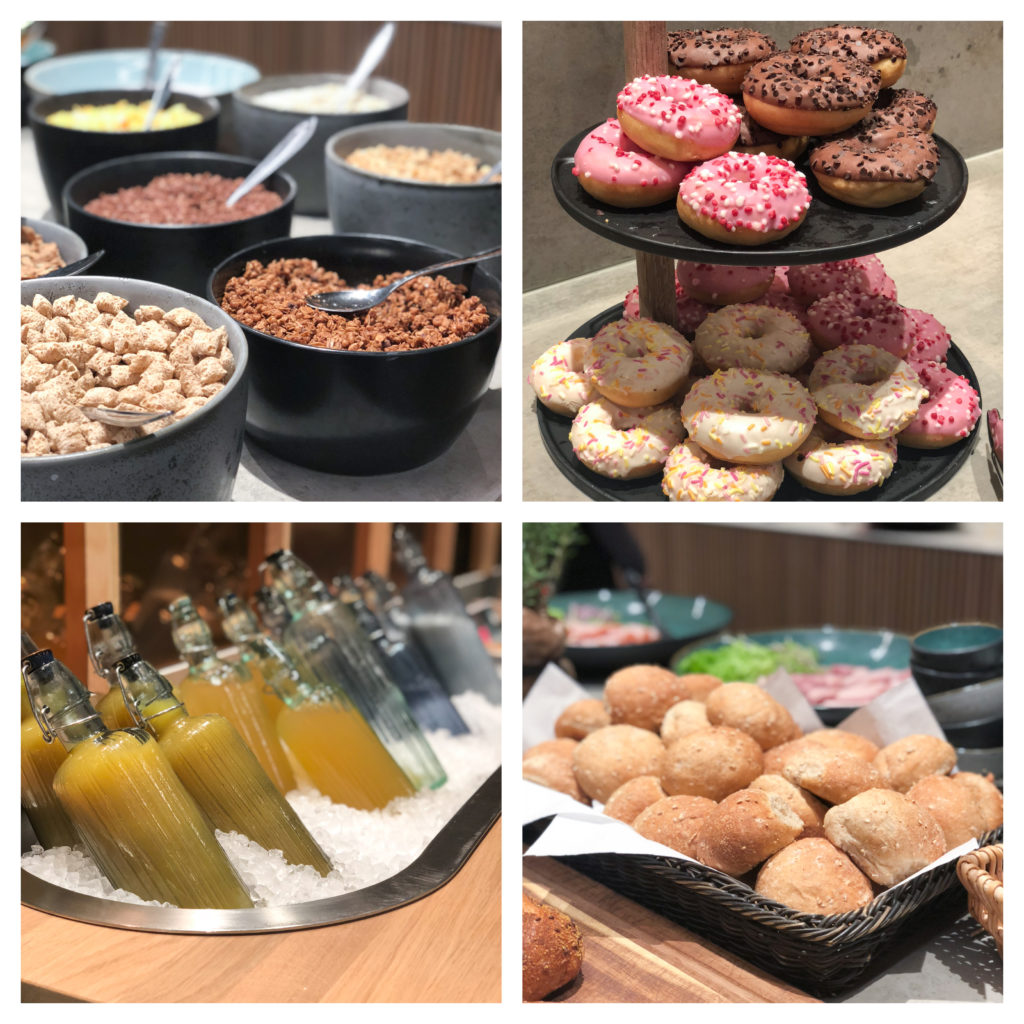 Lørdag morgen fik vi den lækreste morgenmadsbuffet på hotellet. Her var både hjemmebagte boller, lækkert rugbrød, glutenfrie boller, en masse pålæg, yoghurt, diverse mysli, frugt, juice, ingefærshots, røræg og blødkogte æg, bacon, pandekager, donuts, kaffe og meget mere. Virkelig en god morgenmad. Her er lidt billeder