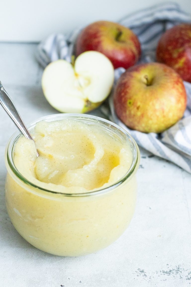 En lækker cremet, syrlig og samtidig sød æblegrød med vanilje. Perfekt oven på grød og yoghurt