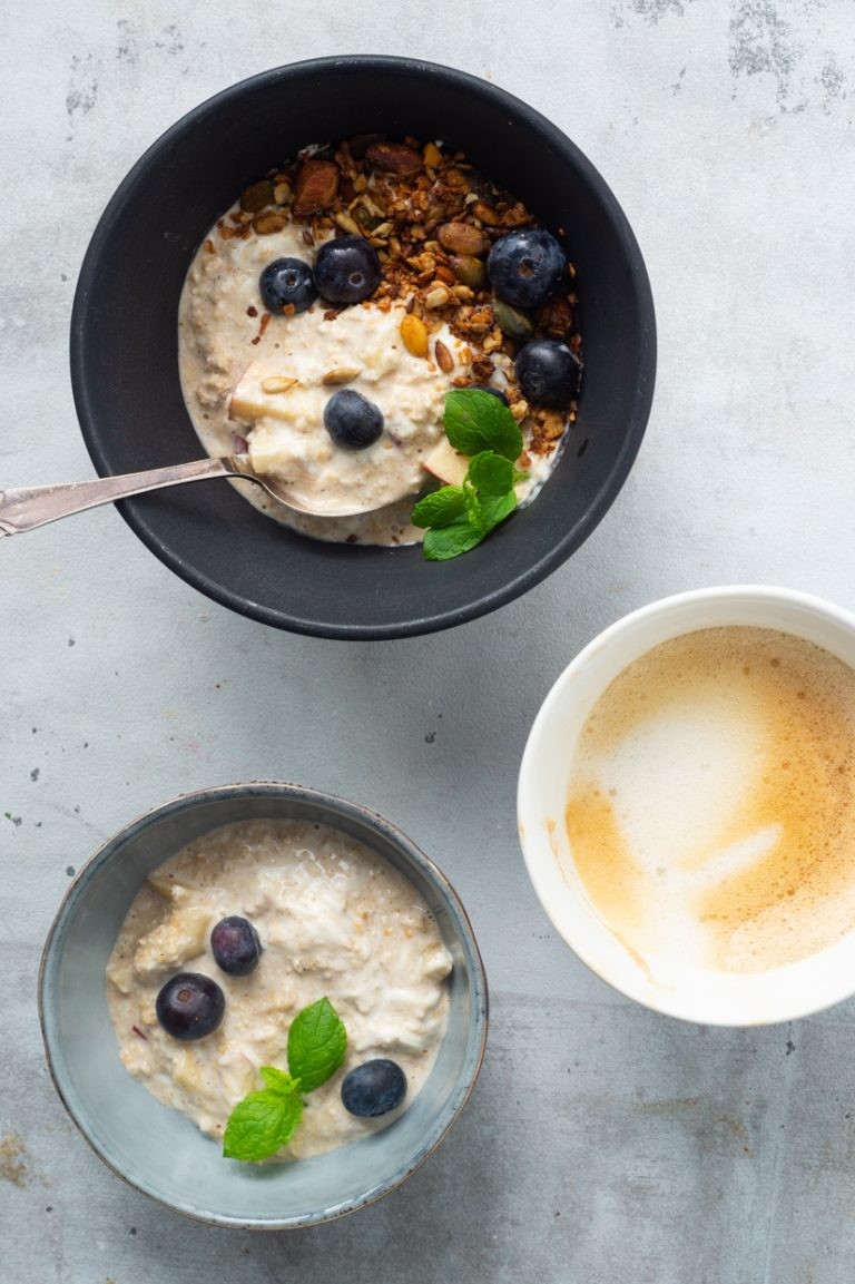 Så lækker en morgenmad!! Har lavet det flere gange. Som Christina også skriver, er det lækkert at rive æblerne. Jeg har revet 3/4 og skåret resten af æblet i små stykker, som du skriver, Julie. Tak for opskriften. 🙂