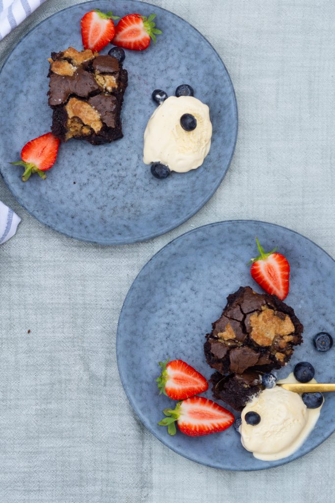 Brookie er en blanding af to verdenklasse kager: brownie + cookie = brookie. De to slags kager er vanvittigt gode hver for sig, men kombinationen er for vild! Prøv den sammen med en kugle vaniljeis og lidt friske bær, så har du en vidunderlig dessert. Du kan endda med fordel lave den dagen før, så den får lov at sætte sig i køleskabet før servering.