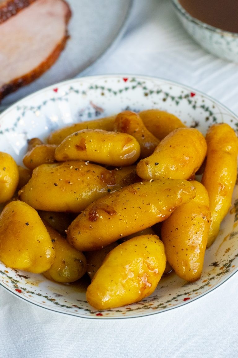 Brunede kartofler hører julen til. Og mortensaften også for den sags skyld. Der er mange forskellige holdninger til, hvordan man laver de perfekte brunede kartofler, og det tog mig da også et par forsøg at nå frem til et rigtig godt resultat. Nu er opskriften klar til jer – lige i tide inden jul.