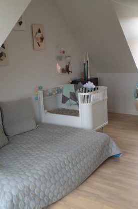 Vores hjem ligger i Silkeborg som er der vi begge kommer fra. Vi har de sidste 8 år boet i lejlighed i Aarhus. Men efter familien er gået fra 2 til 4, trængte vi til mere plads, en have, gratis parkering, et børneværelse. Plads til at bevæge sig, lege inde og ude, plads til gæster. Så nu har vi købt et gammel 3 plans-hus med stuk, fine gamle bjælker, skæve vægge, vinduer med sprosser. Fine detaljer på dørhåndtagene og blyinfattede vinduer.