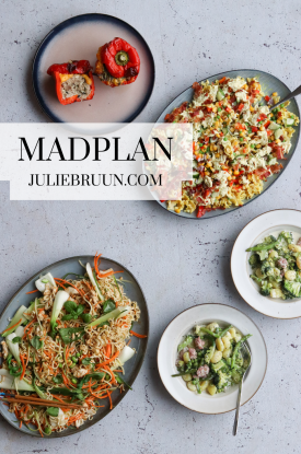 Jeg har også delt mine madplaner om i temaer, så du kan gå efter dem udelukkende med børnevenlige retter. Eller udelukkende med vegetariske opskrifter, mad fra andre verdenskøkkener eller måske du ønsker billige madplaner. De har hver deres kategori, men her hvor du er landet – har jeg mikset dem.