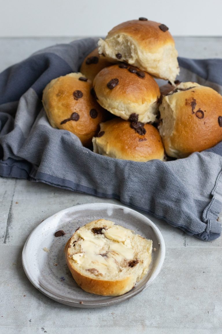 Chokoladeboller, en opskrift på hjemmebagte søde boller med chokolade i. Helt perfekte med et tykt lag smør på. Min chokoladeboller opskrift giver en blød bolle med en let skorpe uden på, så de er dejlig sprøde. Det er nemlig sådan jeg selv foretrækker boller. De er nemme at lave og så er de ret hurtige, da de ikke har voldsom lang hævetid. Du kan også skippe anden hævning for at gøre bageprocessen endnu hurtigere.