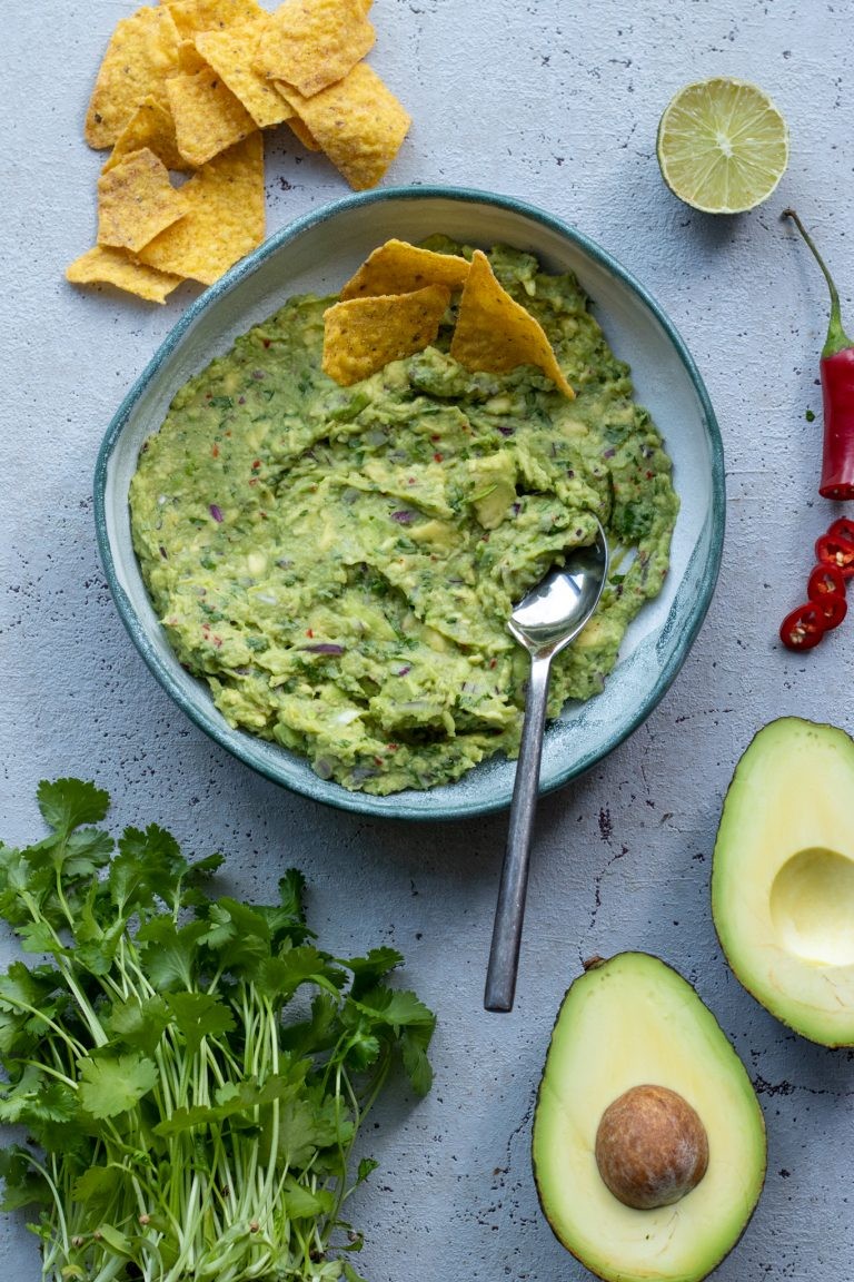 Du kan sagtens begge dele. Jeg kan godt lide det, både ift. smag, men også ift. konsistens. Der skal dog ikke bruges for meget, men det kan lige få dippen til at strække sig til en lidt større portion. Man kan også bruge skyr, græsk yoghurt eller ander surmælksprodukter her til. Du kan sagtens skifte limesaft ud med citron, jeg elsker dog smagen af lime. Du kan komme mere hvidløg i hvis du synes og evt. også lidt chili. Du kan som tidligere nævnt, komme cherrytomater og frisk koriander her i. Der er mange muligheder og det er bare med at prøve sig frem, for at finde den version af en guacamole dip du elsker mest. Her er en video af udgaven uden creme fraiche.