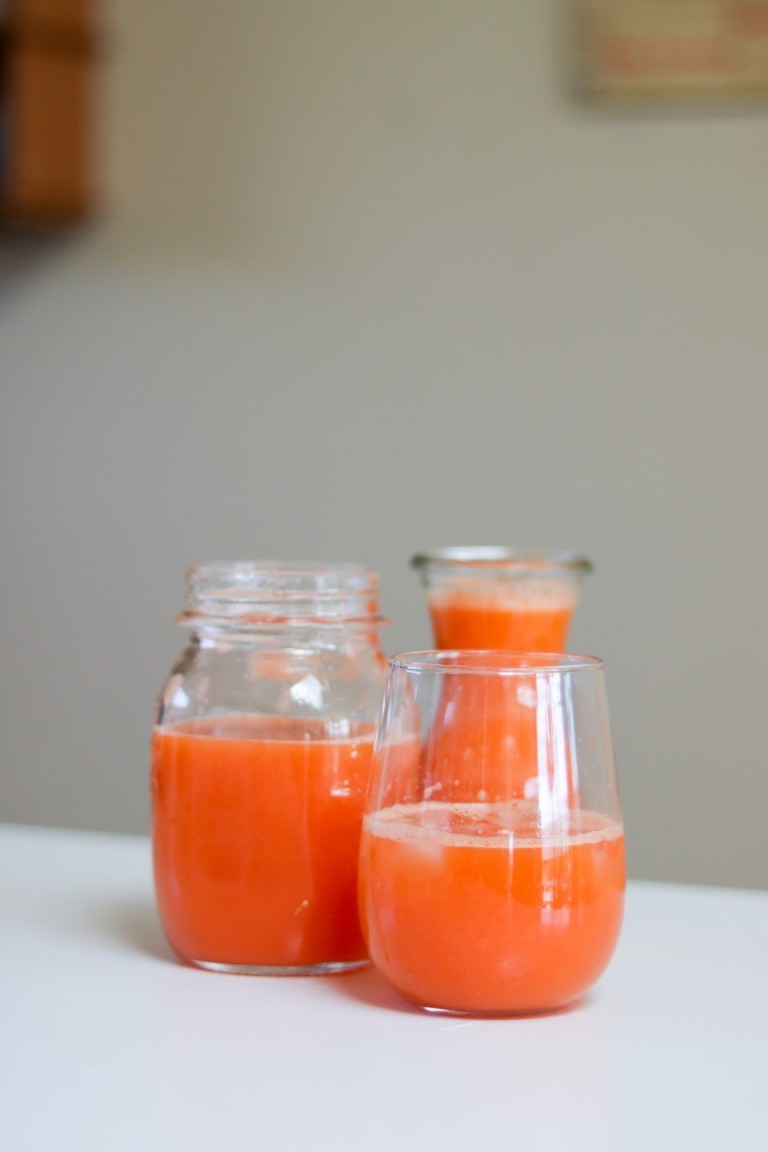 Grape er en frugt som er lidt bitter i smagen, så er man ikke til dette – kan man bruge appelsin i stedet. Jeg synes personligt at det er ret godt i juice, især samen med gulerod. Men suppler også gerne med appelsin eller æble for mere sødme. De er også rige på vitaminer og mineraler, især C vitamin og folat. Prøv også denne grapesalat, hvis du elsker den syrlige lille frugt.