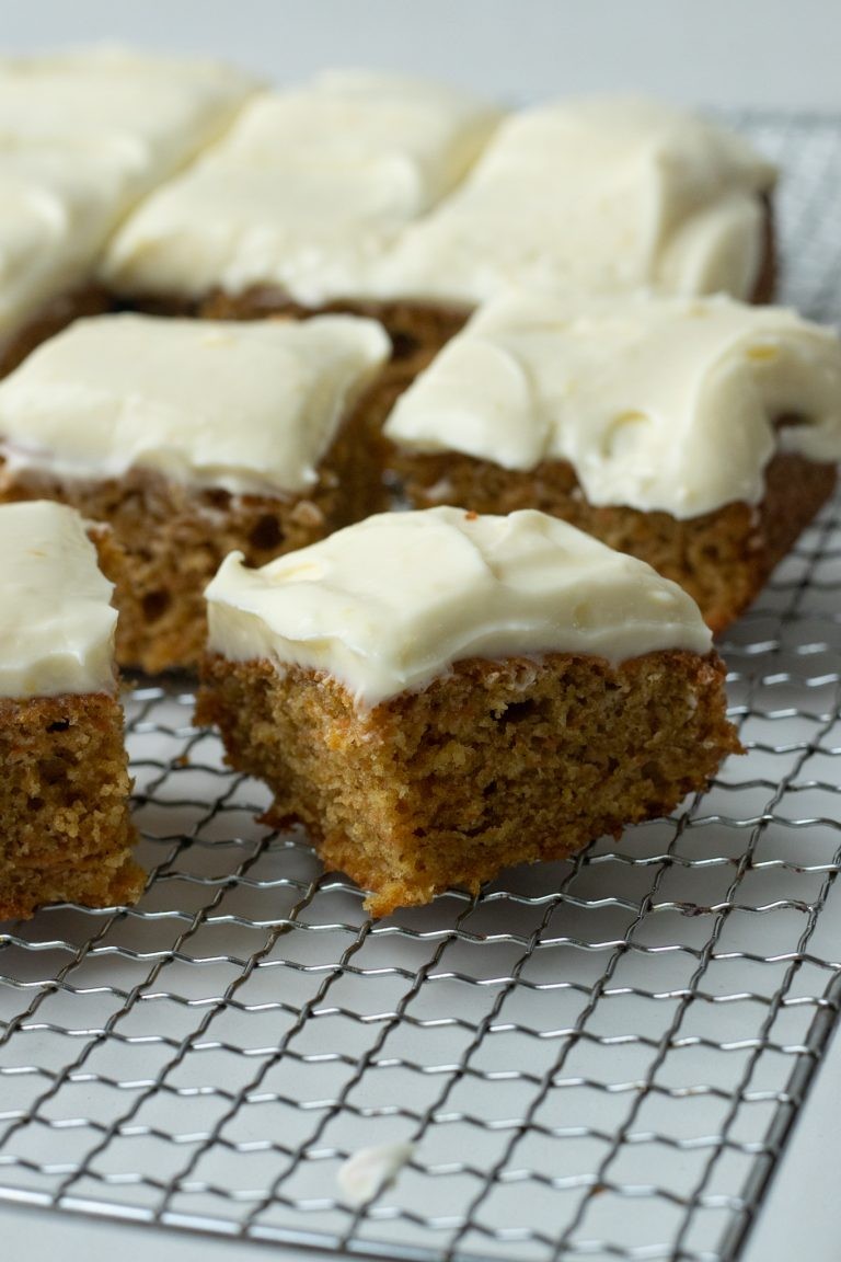 Her er mit bud på den allerbedste opskrift på gulerodskage. Jeg har smagt en del gennem tiden og har også selv kastet mig ud i flere varianter tidligere, både glutenfrie, sukkerfrie og som her – en klassisk gulerodskage. Denne her rammer bare alt det jeg synes gør en gulerodskage perfekt. Den er med lige del sukker og brun farin, dog en anelse mindre end mange andre opskrifter på gulerodskage. Jeg har desuden brugt smør, æg, kanel, bagepulver, lidt salt, hvedemel og selvfølgelig revet gulerod. Hvis du ikke bryder dig om smagen af kanel, kan dette undlades. Du kan også give den endnu flere varme krydderier og tilsætte kardemomme, stødt ingefær og nelliker f.eks. Den hvide hvedemel kan du skifte ud med grahamsmel, hvis du ønsker en variant med mere fuldkorn. Her er mit bud på den allerbedste version, som giver en super saftig gulerodskage, der er sød – men ikke for sød.