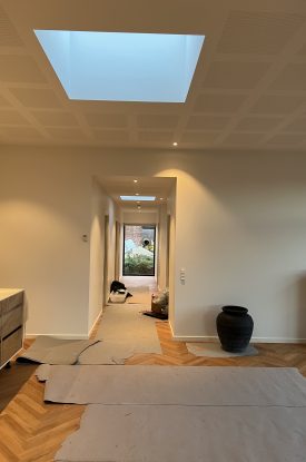 En ret stor omgang som tog os (vores håndværkere) lidt over 1/2 år. Slut juli 2018 flyttede vi ind, dog med en ufærdig kælder, gang og endda også køkken. Vi boede den bordplade og håndvask de første uger.