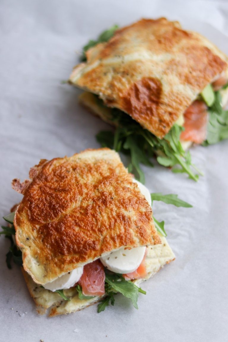 Det her hytteostbrød er jeg stødt på flere gange på de sociale medier på det seneste. Det er super helseagtigt, for det består kun af hytteost og æg – og lidt salt og oregano. Da jeg stod og eksperimenterede, tænkte jeg ærligt talt, at det aldrig ville blive til “brød”. Og det er jo heller ikke brød-brød, men jeg er alligevel overrasket over, hvor fast det er i konsistensen. Og ja, så blev det altså til en lille sandwich med laks, rucola og mozzarella. Et fint alternativt til brød, hvis man ønsker at spare lidt på kulhydraterne og fylde godt op på protein-kontoen.