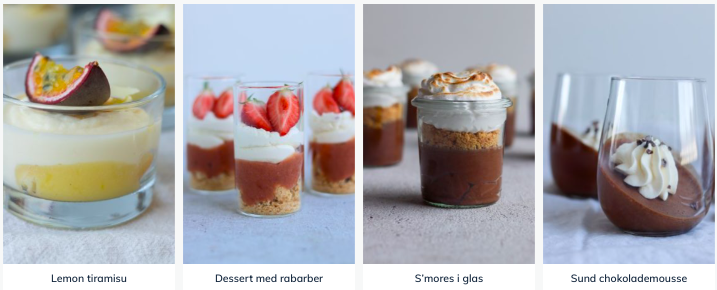 Det her er en kategori som er perfekt, hvis du mangler en dessert til gæster. Det er nemlig super fint, når man kan kigge igennem de små glas og se de fine lag i trifli, mouse eller lignende. Prøv en af understående, hvis du mangler en idé til en trifli. Du kan pynte med hvad som helst, f.eks. bær og frugt. Marengs eller flødeskum. Eller måske karamelliserede popcorn, krystalliseret chokolade eller kandiseret citronskal. Hvis du elsker at pynte og nusse rigtig om din dessert, så kig med i kategorien her – for jeg synes virkelig der er mange gode bud på fine desserter og kager til gæster.