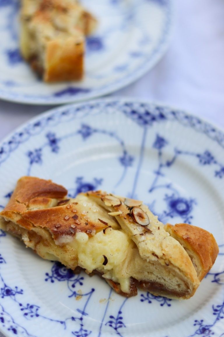 Du kan også prøve at bage mine kardemommesnurrer med marcipan. Kardemommesnurrer er nok mit yndlingsbagværk. Eller hvad med en lille bid af himlen i form af en luksus kanelsnegl med creme – mums. Eller haps min opskrift på en svampet brunsviger med rigelige mængder snasket remonce. Lige som den skal være!