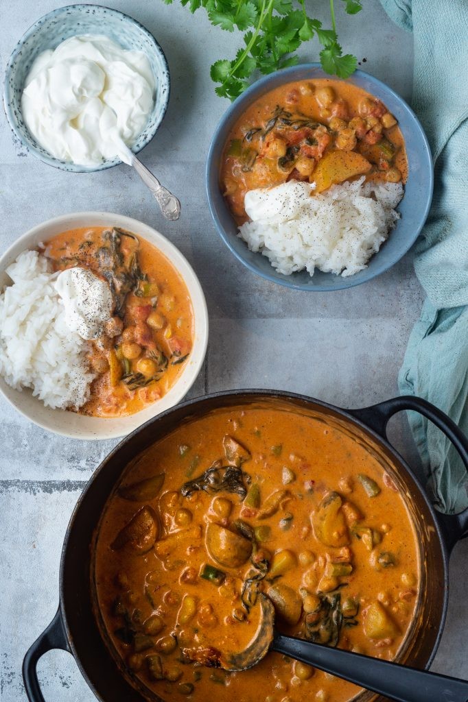 Jeg brugte som sagt spinat, kartofler og asparges i min ret. Her kan du bruge en hel masse andre grøntsager også. F.eks. gulerødder, peberfrugt, løg, hvidløg, grønne bønner, blomkål, aubergine eller squash. Så har du en masse grøntsager liggende, er det bare med at komme dem i retten. Hvis du ønsker lidt andre eller færre krydderier end jeg, så kan du sagtens undlade nogle af dem. Vær dog obs på at smagen så ændrer sig, men hvis du smager retten til og synes den er god, er alt jo godt. Jeg elsker dog varianten som den er her.