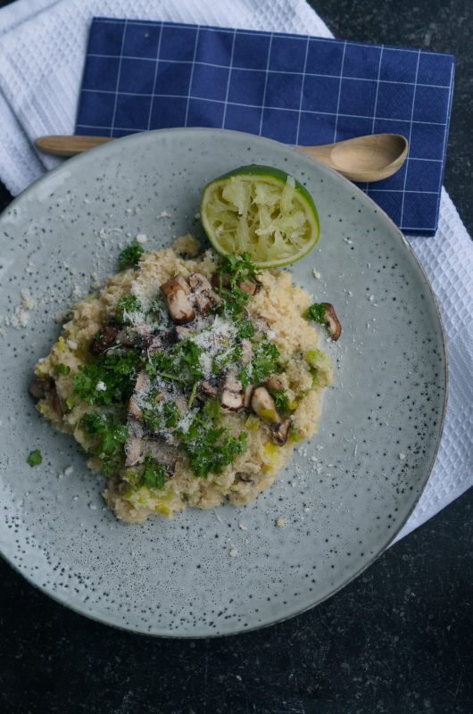 Blomkålsrisotto med svampe og porrer