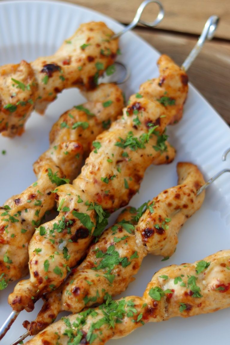Opskrift på saftige kyllingespyd med chilimayo