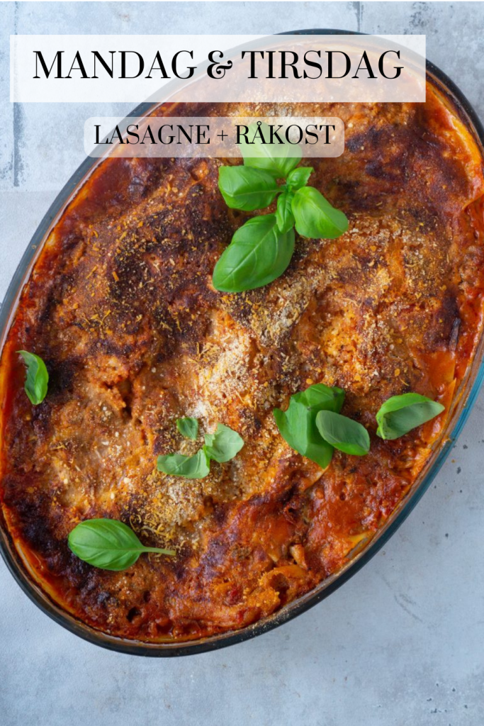 Mandag og tirsdag: lasagne, en klassisk en med oksekød og monaysauce. Server sammen med en råkostsalat. F.eks. denne med rødbede, gulerod, æble og appelsin