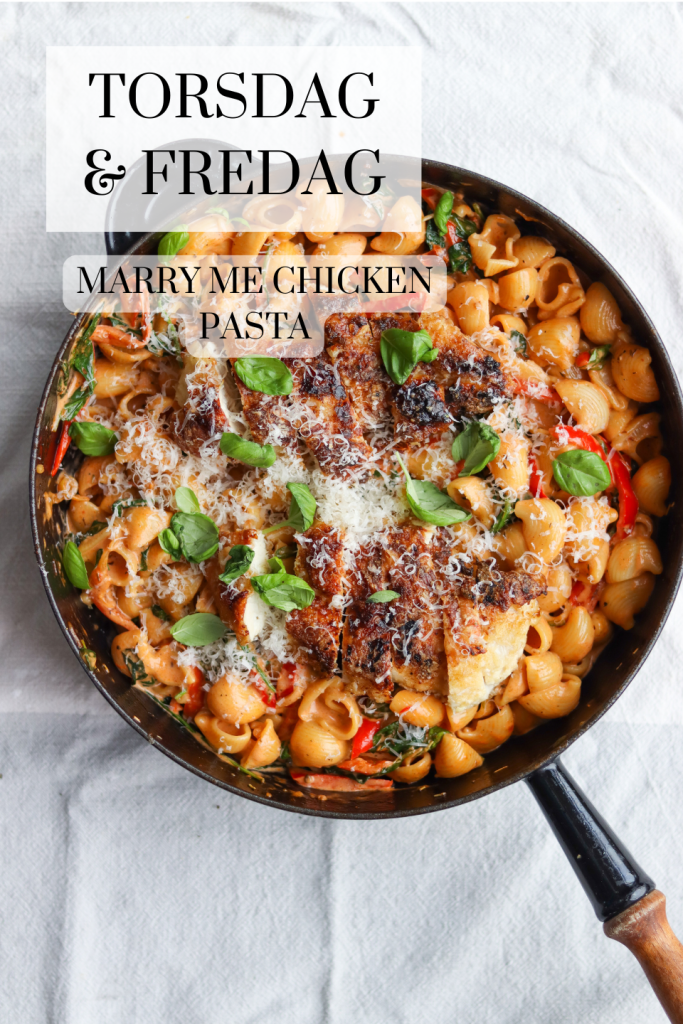 Torsdag og fredag: en omgang marry me chicken pasta ret. Mums, med soltørret tomat, frisk basilikum og parmesan. En virkelig lækker pastaret, som allerede er blevet en favorit herhjemme.