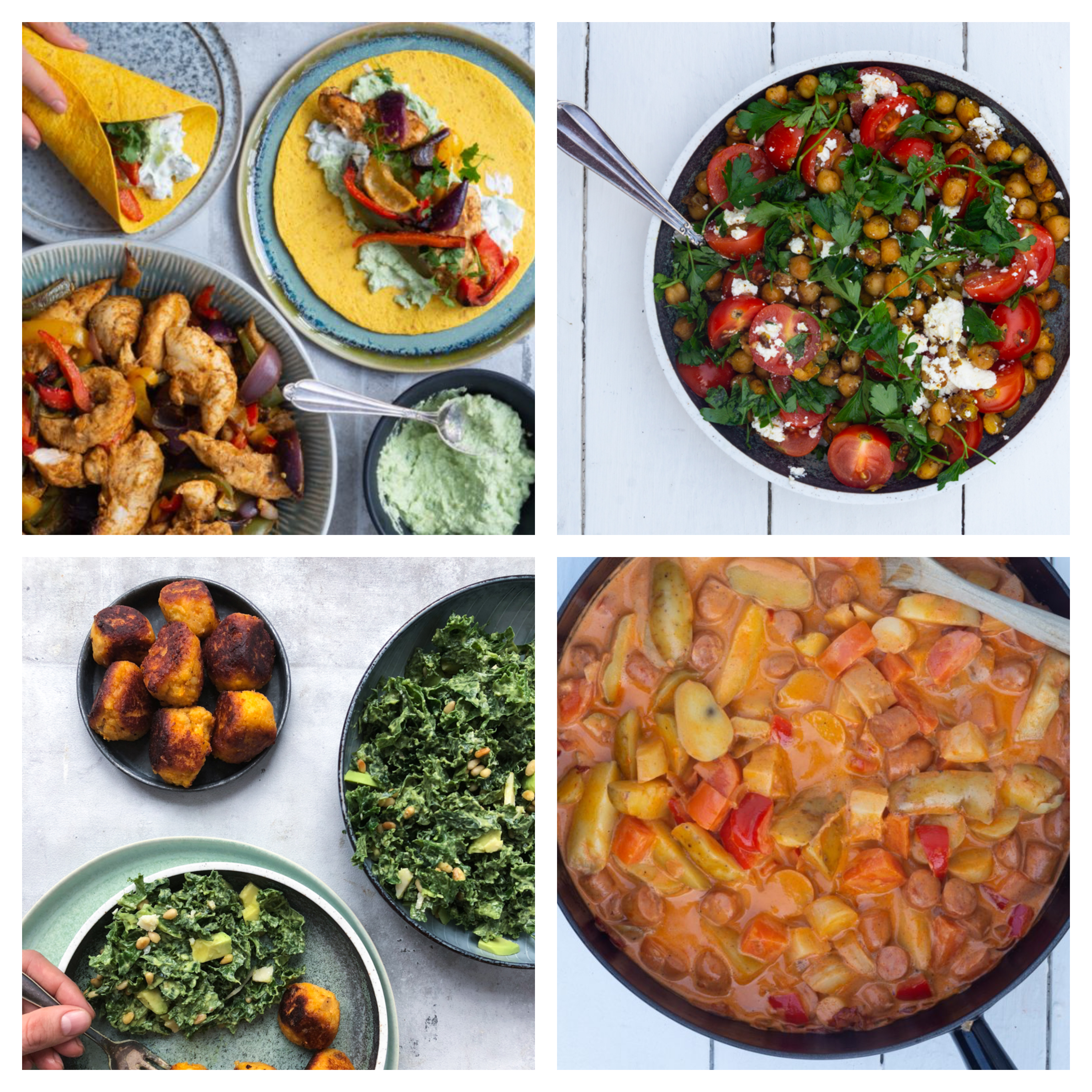 Her er næste uges madplan, som er nem og dejlig grøn. Jeg har fokus på at undgå madspild, genbruge retter og råvarer – så du ikke skal stå i køkkenet hver aften. Nogle af aftenerne er det bare at varme rester op, og så skulle ingredienserne gerne gå lidt igen, så du ikke skal handle alverdens.