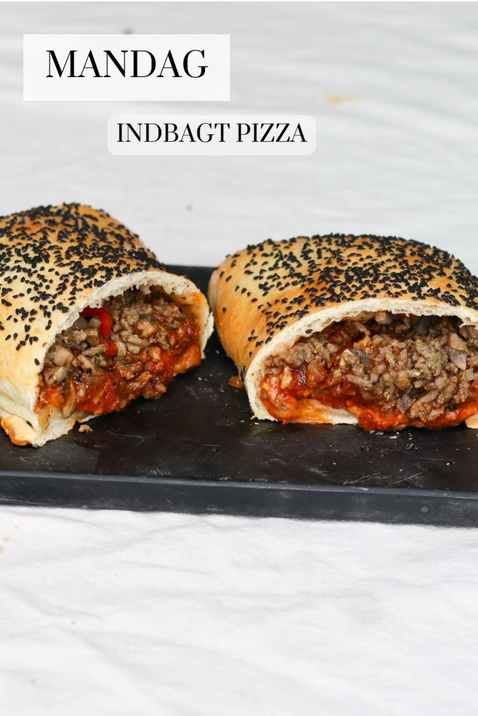 Mandag kan du glæde dig til en seriøst lækker indbagt pizza fuld af smag. Server den sammen med en simpel spidskålssalat med æbler og dild. Lav gerne ekstra af salaten, så den kan bruges som tilbehør tirsdag også.