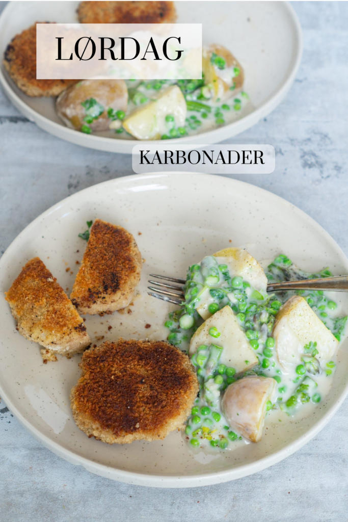 Lørdag: I weekenden kan I glæde jer til noget gammeldaws mormormad, nemlig karbonader med kartofler og hvid sauce med ærter og asparges.