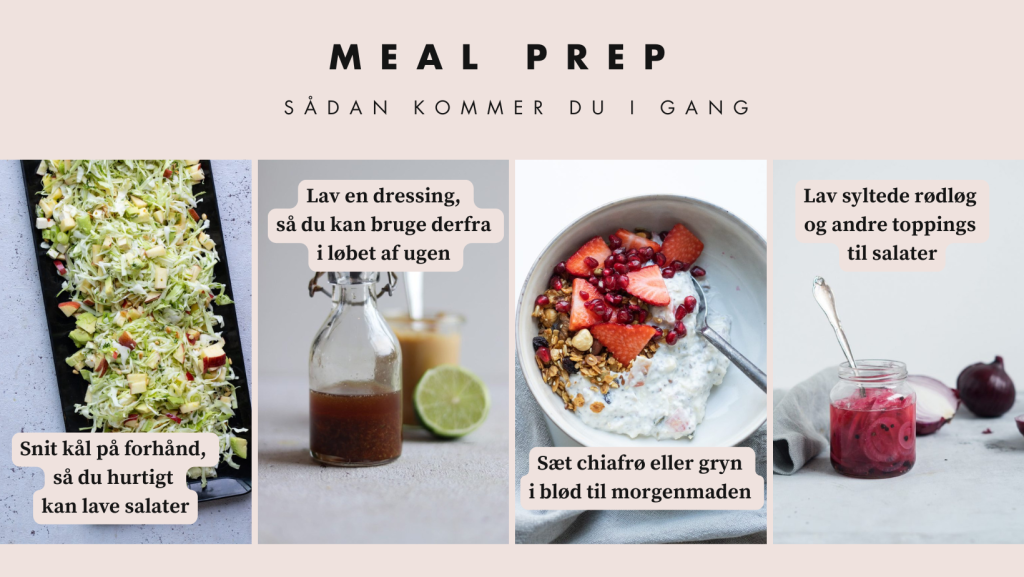 Meal prep til begyndere handler om at gøre det nemt og overskueligt – du behøver ikke lave mad til hele ugen fra start. Ellers er der en masse bud på mere konkrete idéer ovenfor