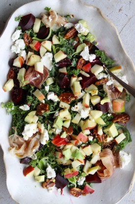 - salat med bagt feta og tahindressing. Et bud på en lidt anderledes salat, som både er saltet, sød, crunchy og blød.