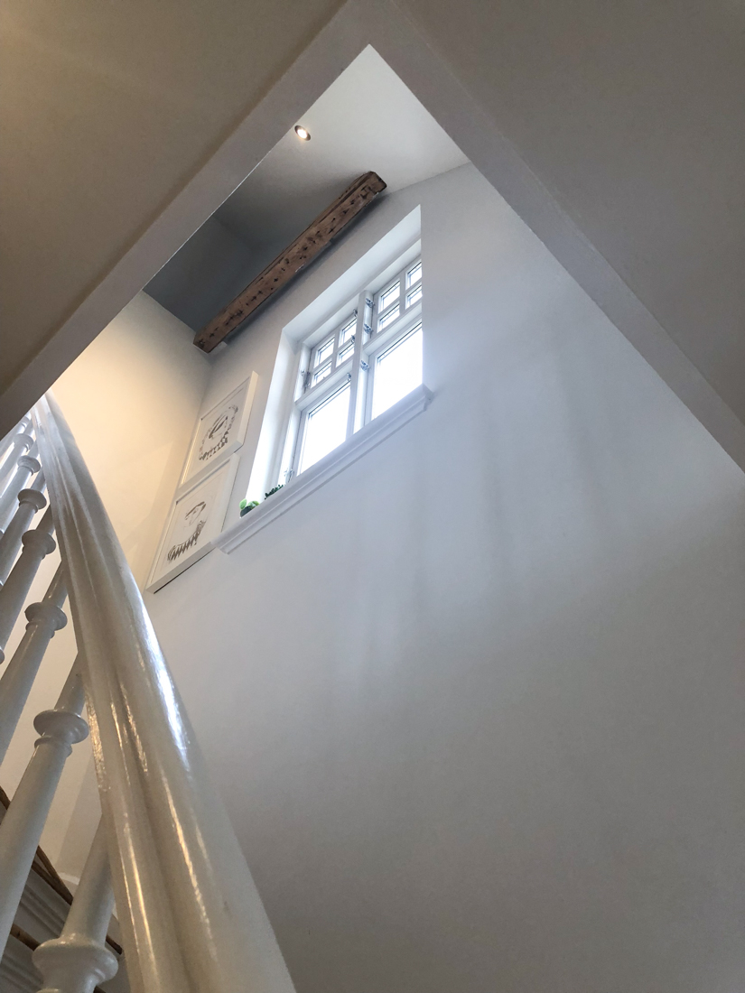 - Fået malet vægge, lofte og trappen/gelænderet.