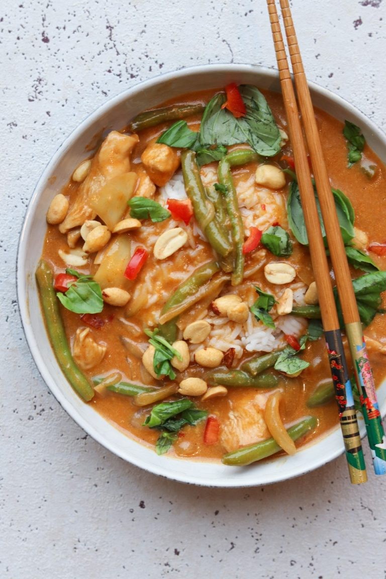 Lækker smagfuld panang med kylling og masser af grønt.