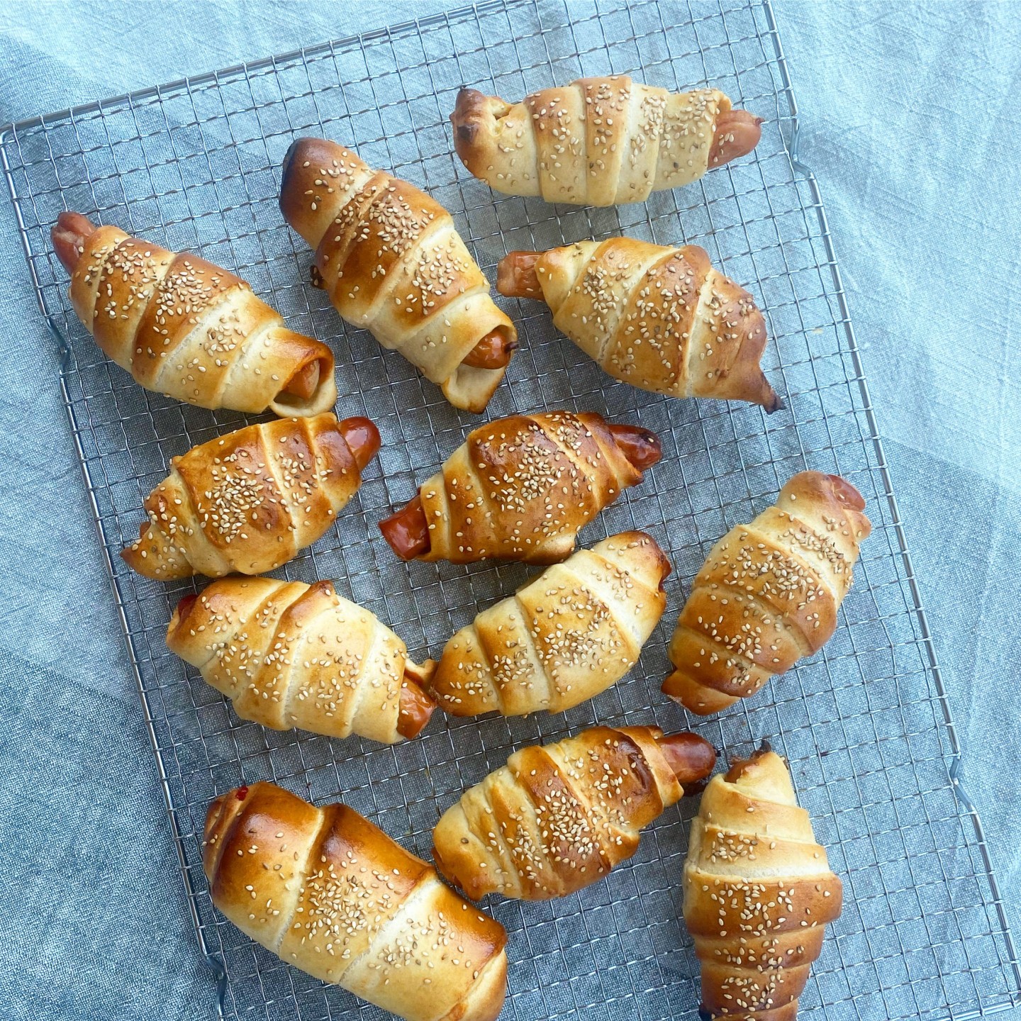 - Pensl med et sammenpisket æg, drys evt. med sesam og bag dem i 15-17 minutters tid.