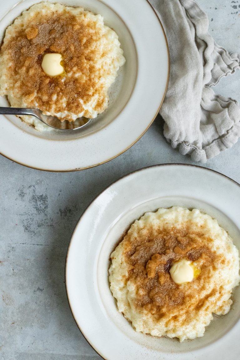 Lav endelig en god omgang grød, nu du er i gang. Det kan nemlig godt fryses og tages op igen en anden god gang. Hvis og når vi laver dobbeltportion, er det dog heller ikke noget problem at få resterne spist dagene efter. En portion til morgenmad dagen efter, er slet ikke så skidt. Du kan også bruge dine rester til disse klatkager. De smager så godt, især med masser af sirup hen over. Du kan selvfølgelig også arbejde videre med din risengrød og lave dig en risalamande ud af opskriften