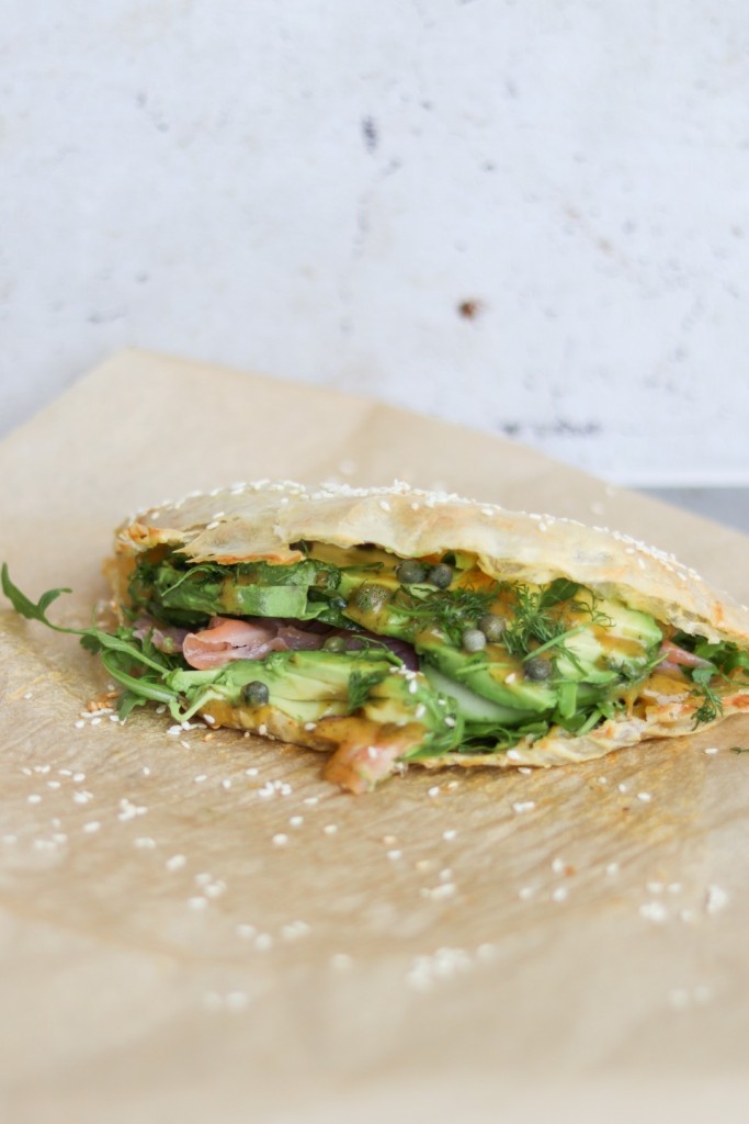 Du kan jo bare bruge præcis det fyld, du elsker mest. Jeg brugte som sagt laks, dilddressing, avocado, rucola og agurk. Mega nemt, da der ikke rigtig er noget af fyldet, der skal forberedes. Men du kan også bruge:
