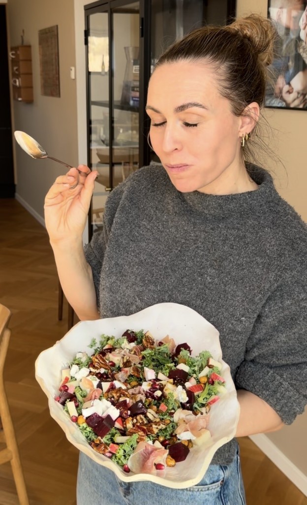 - hvis du ikke er til rødbede, så skift det evt. ud med gulerødder. Bagte gulerødder er nemlig også virkelig lækkert i salater.