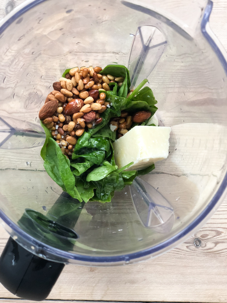- Salat med bagte hvidløgstomater, agurk og ristede pinjekerner (Halver cherrytomater og kom dem i et fad med lidt olie, salt, hvidløg og frisk timian – bag dem i ovnen ved 200 grader i ca. 15 minutter – Kom frisk spinat i en skål sammen med agurk og de her tomater fra ovnen inkl. olien de ligger i – top med ristede eller bagte pinjekerner)