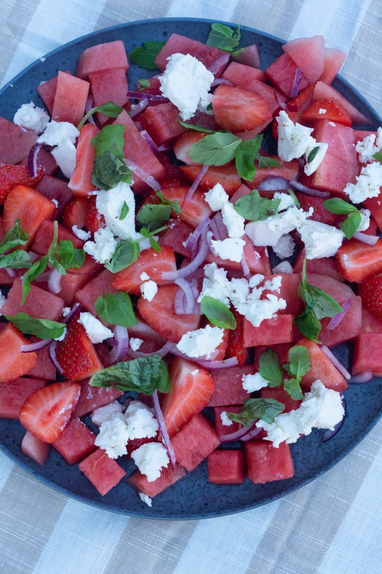 Vandmelon salat med feta og jordbær