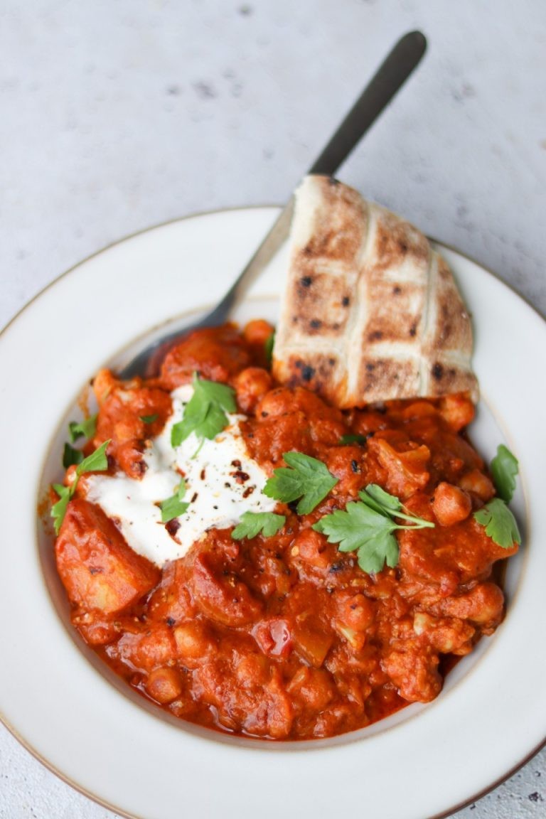 Den her vegetar gryderet med blomkål og kartofler er super smovset og lækker. Den er cremet og rund i smagen, og så er den fuld af god næring og varme krydderier. Sådan en omgang er jo perfekt at varme sig på i efteråret og vinteren, men altså den danske sommer er lunefuld, og kan også sagtens indbyde til en varm, vegetarisk gryderet. Håber du vil prøve min opskrift.