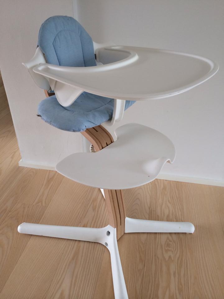 Ift. hvilken stol han sidder i, vil jeg lige slå et slag for vores (den på billedet). Jeg elsker den! Jeg elsker både selve stolen, da den ud over at være ganske pæn også er praktisk, idet man kan skifte indsatsen i takt med barnet vokser. Vi har fået et bord med til den og det er uundværligt synes jeg. Det er så fedt at han kan svine på sit eget bord (som er noget nemmere at tørre af end vores træbord) og så hamrer han i det hele tiden. Desuden har han meget lange arme og kan nu stå op i stolen, så alt i 50 centimeters omkreds pæres på gulvet. Igen er bakkebordet smart, så er man ikke nødt til at fjerne alting fra bordet i hans ende. Stolen er fra Nomi. Håber indlægget kan bruges med babymad, giv gerne et praj så jeg ved om det er no go eller gogo..